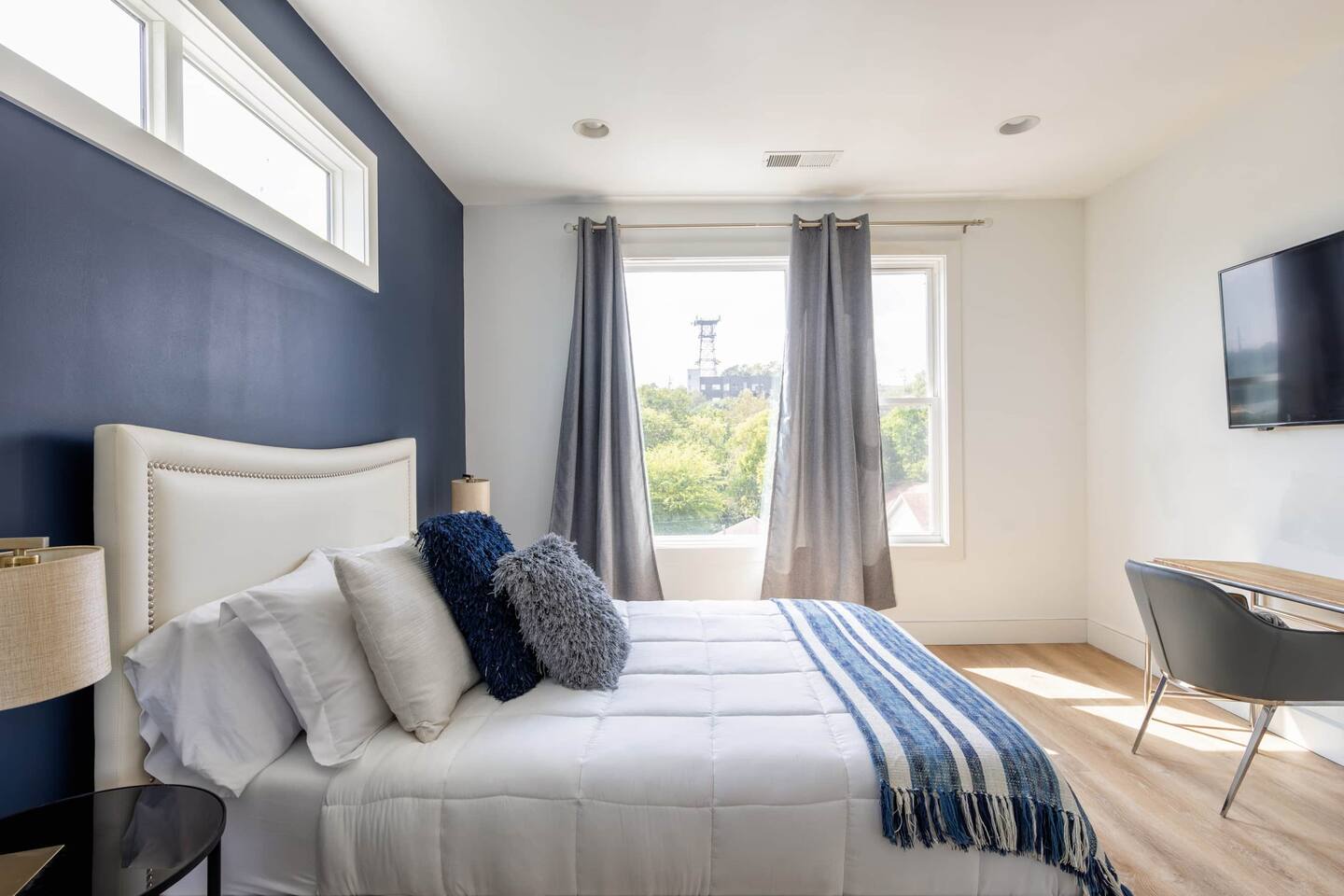 Amazing rooftop views of Downtown Nashville + city living! Located in a central area, you'll have easy access to the thriving neighborhoods of West End, Midtown, Vanderbilt, and the renowned local attractions such as the Parthenon. Easy access to highways! Short ride share drives to Broadway! Surrounded by a vibrant local scene. Explore the nearby bars and restaurants in the Nations, West End, Midtown and beyond! Indulge in delicious cuisine and experience the lively atmosphere of the city.