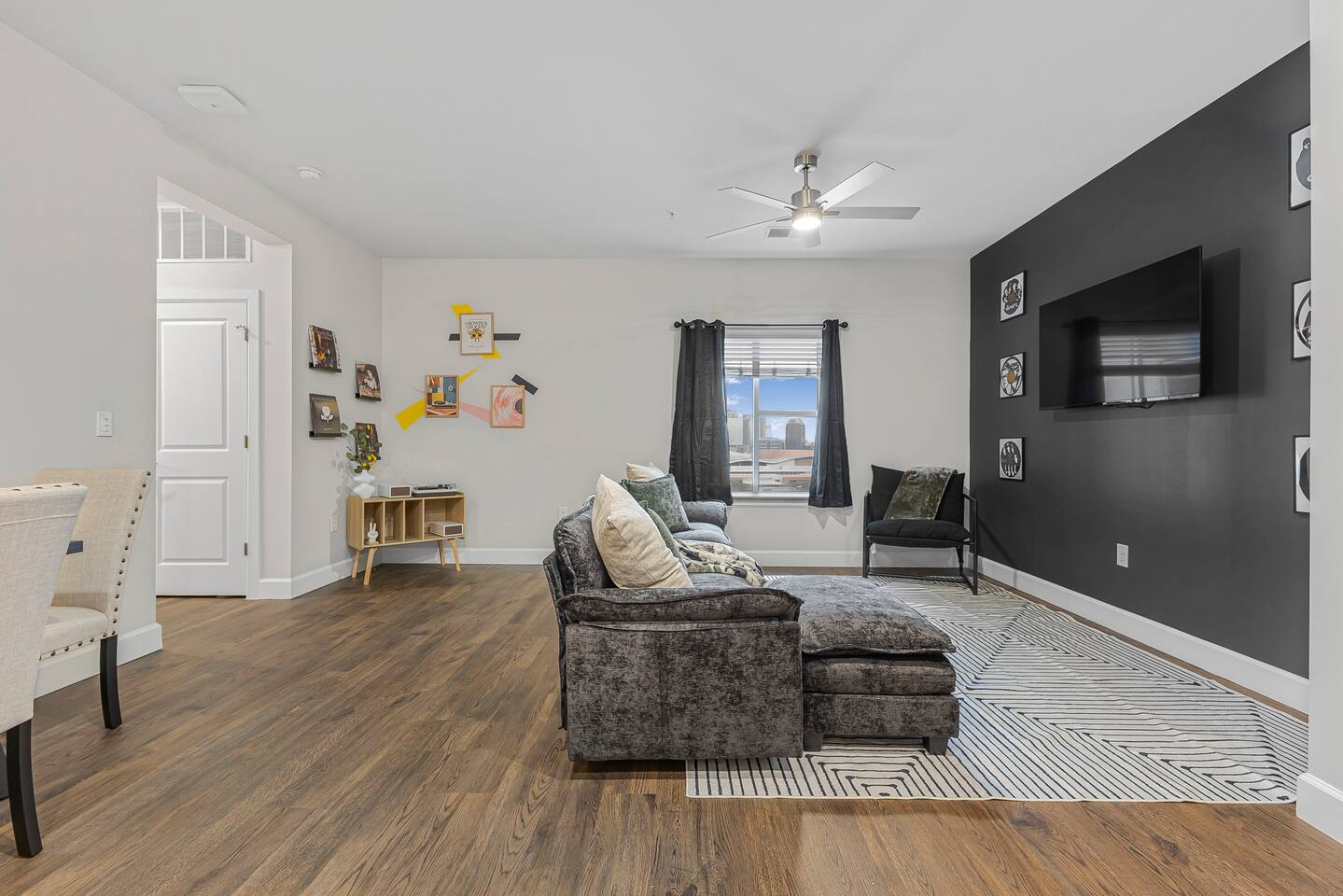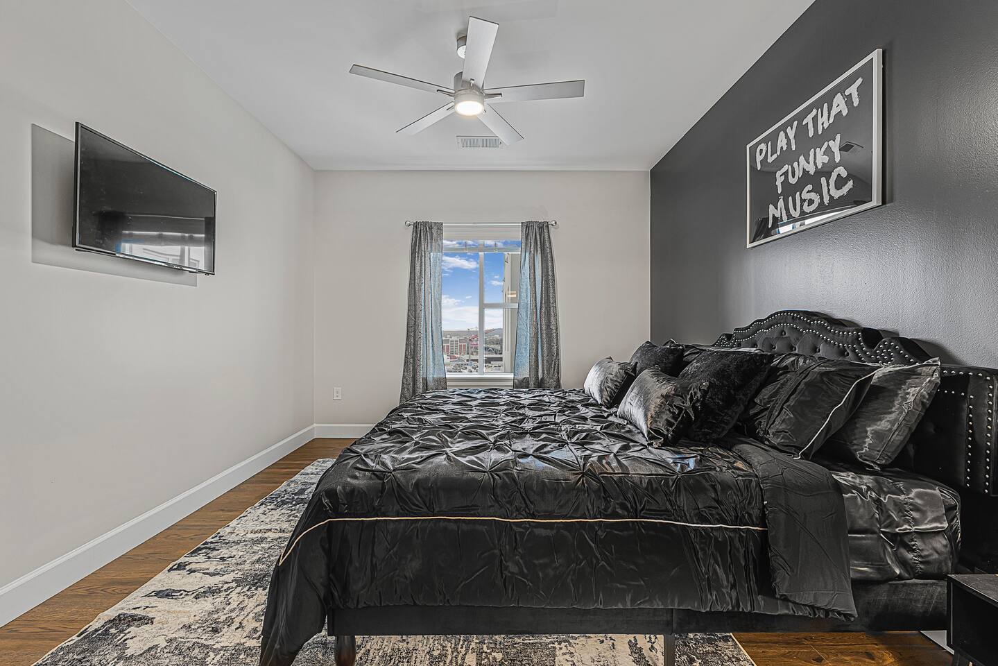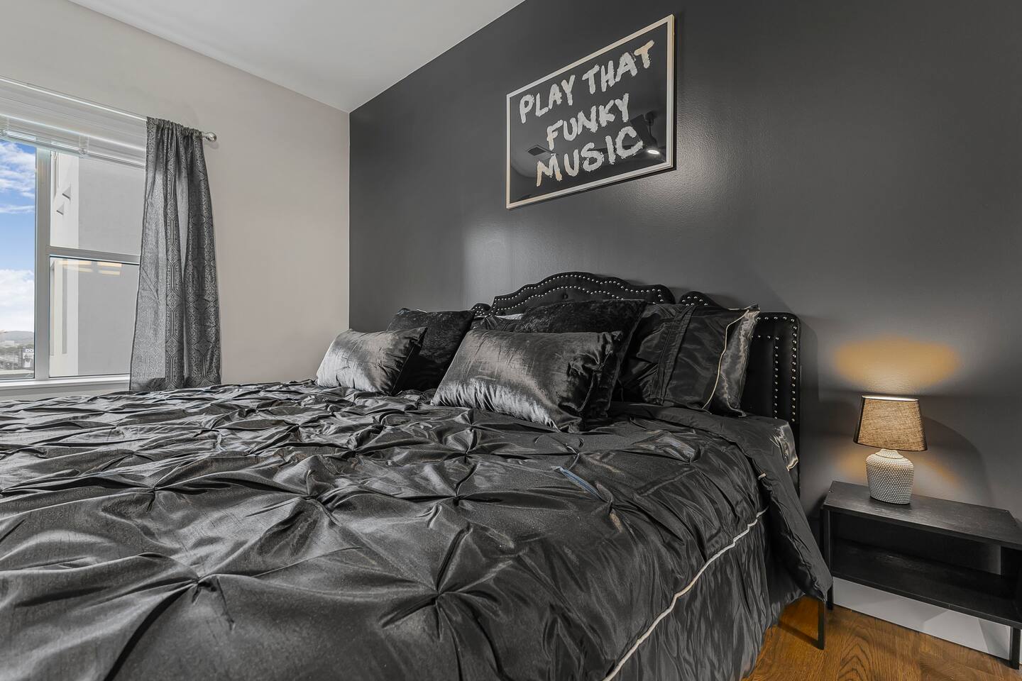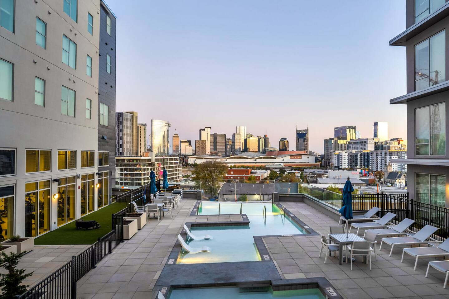 The Flip Side -> *The Living Area: -plush sofa with ottoman -Roku TV -Record player -Dining for 4 -Views of Downtown Nashville *Full Kitchen *Each bedroom has: - a hybrid King bed with premium satin linens - a Roku TV - ensuite bathroom with shower/tub combo - sound machine - blackout curtains Community Amenities -> -Gym -Pool -Two Decks -> We have one parking space available with the unit for a 15$/night fee, please let us know upon booking if you’re going to need this, we have to secure it prior for you, not guaranteed same day -> Please note that this is a smart building, you do have to use a fob to get in and out and obtain it before checking in. Some people don’t like the extra step- we get it! -> We are in the city limits and there are trains that pass through, you will hear them, we do have sound machines to block noise