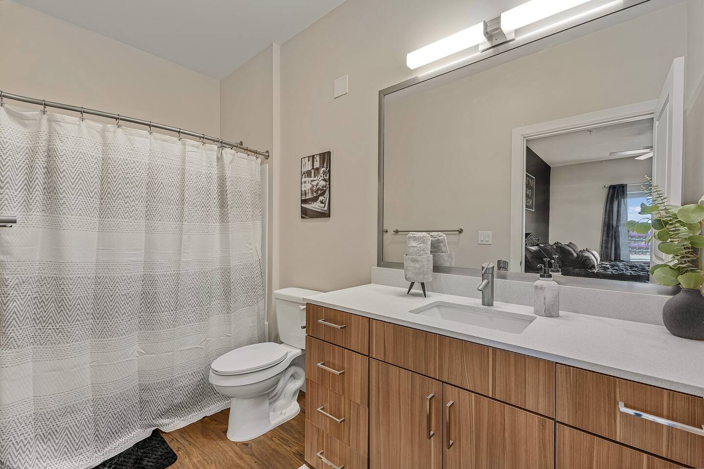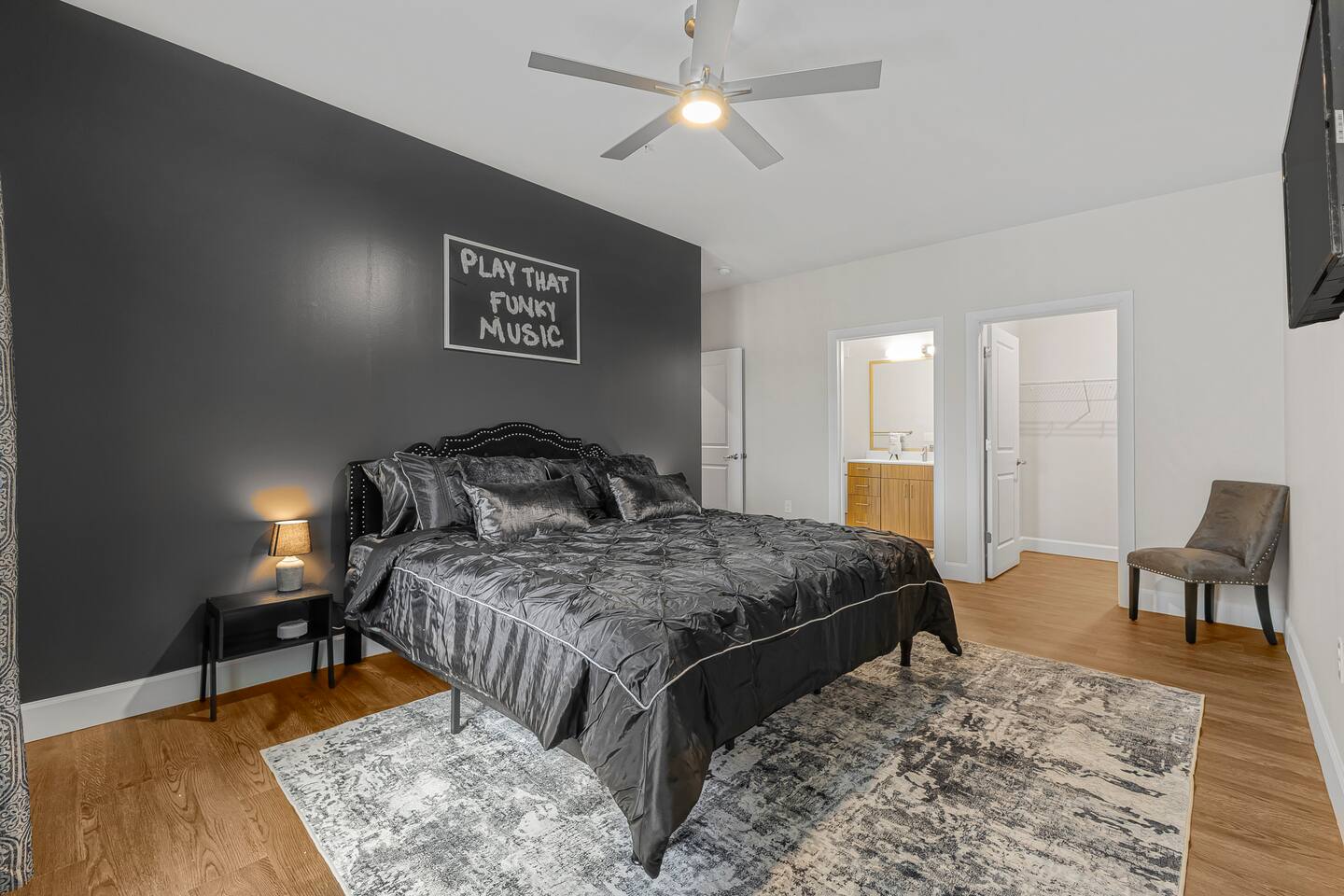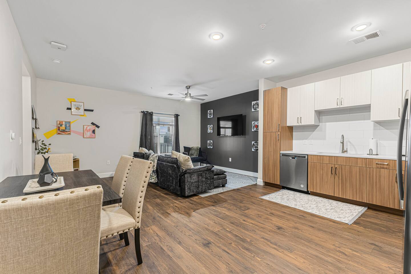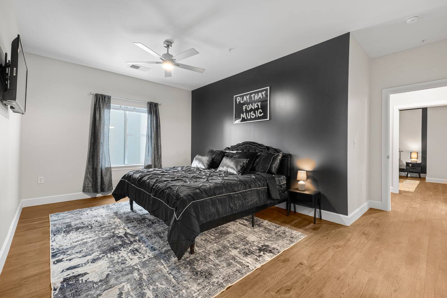 The Flip Side -> *The Living Area: -plush sofa with ottoman -Roku TV -Record player -Dining for 4 -Views of Downtown Nashville *Full Kitchen *Each bedroom has: - a hybrid King bed with premium satin linens - a Roku TV - ensuite bathroom with shower/tub combo - sound machine - blackout curtains Community Amenities -> -Gym -Pool -Two Decks -> We have one parking space available with the unit for a 15$/night fee, please let us know upon booking if you’re going to need this, we have to secure it prior for you, not guaranteed same day -> Please note that this is a smart building, you do have to use a fob to get in and out and obtain it before checking in. Some people don’t like the extra step- we get it! -> We are in the city limits and there are trains that pass through, you will hear them, we do have sound machines to block noise