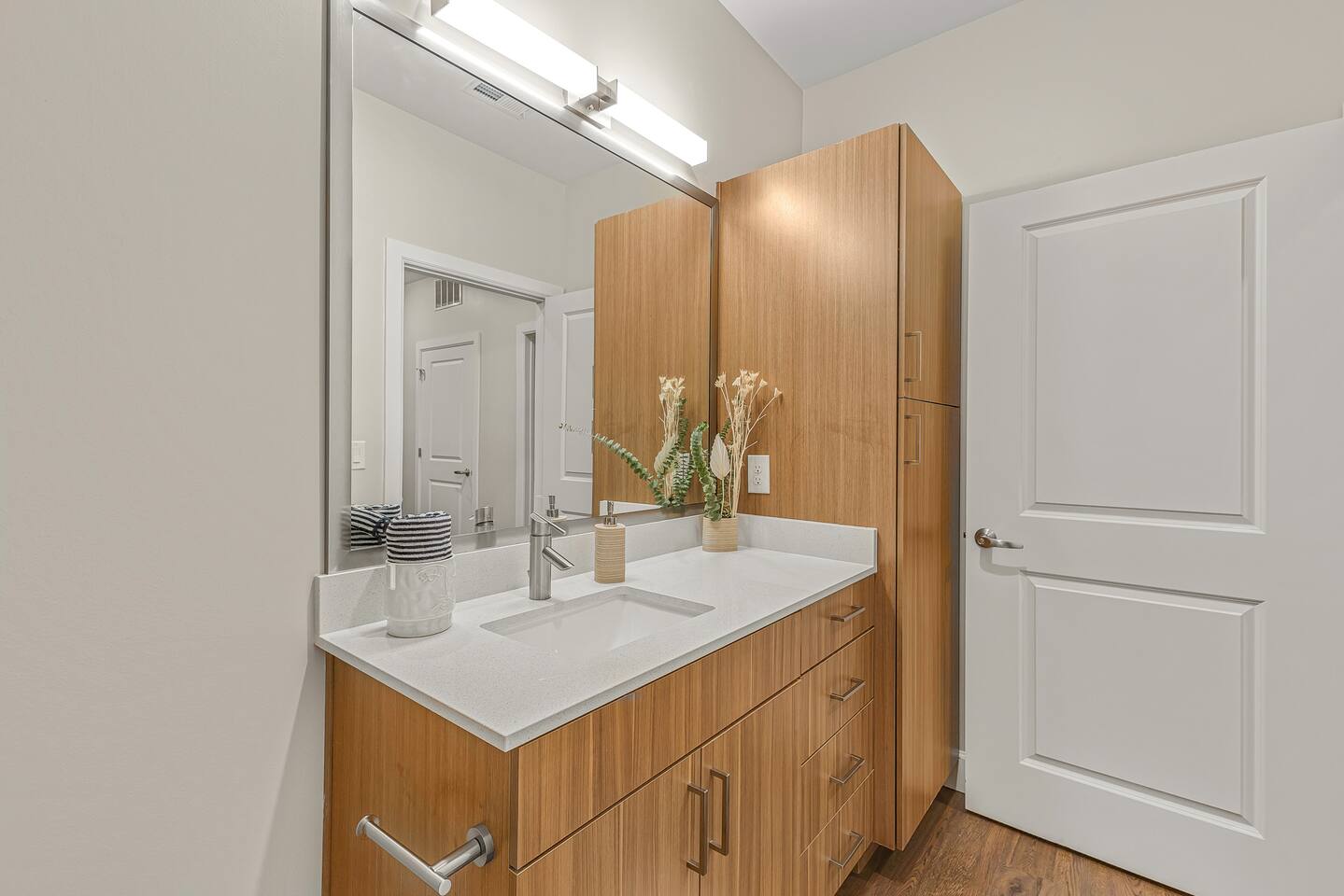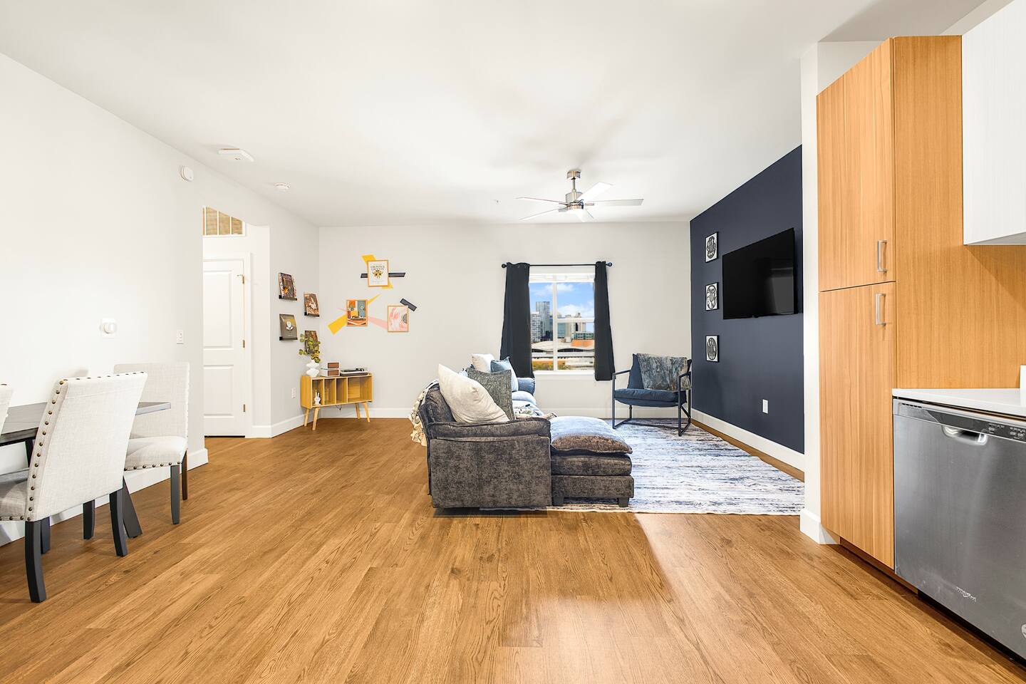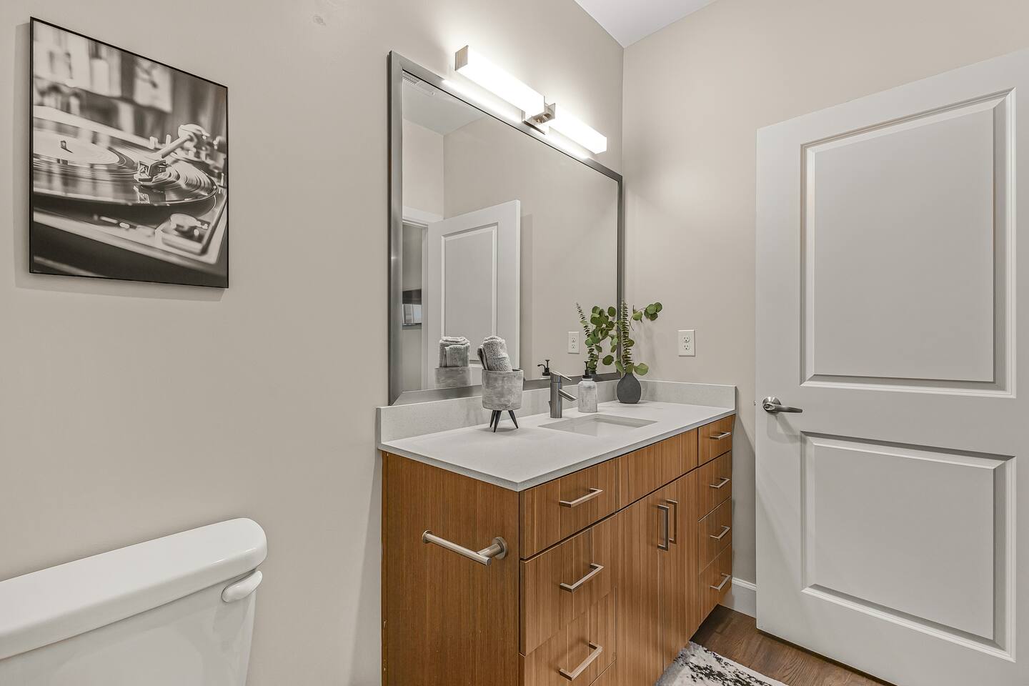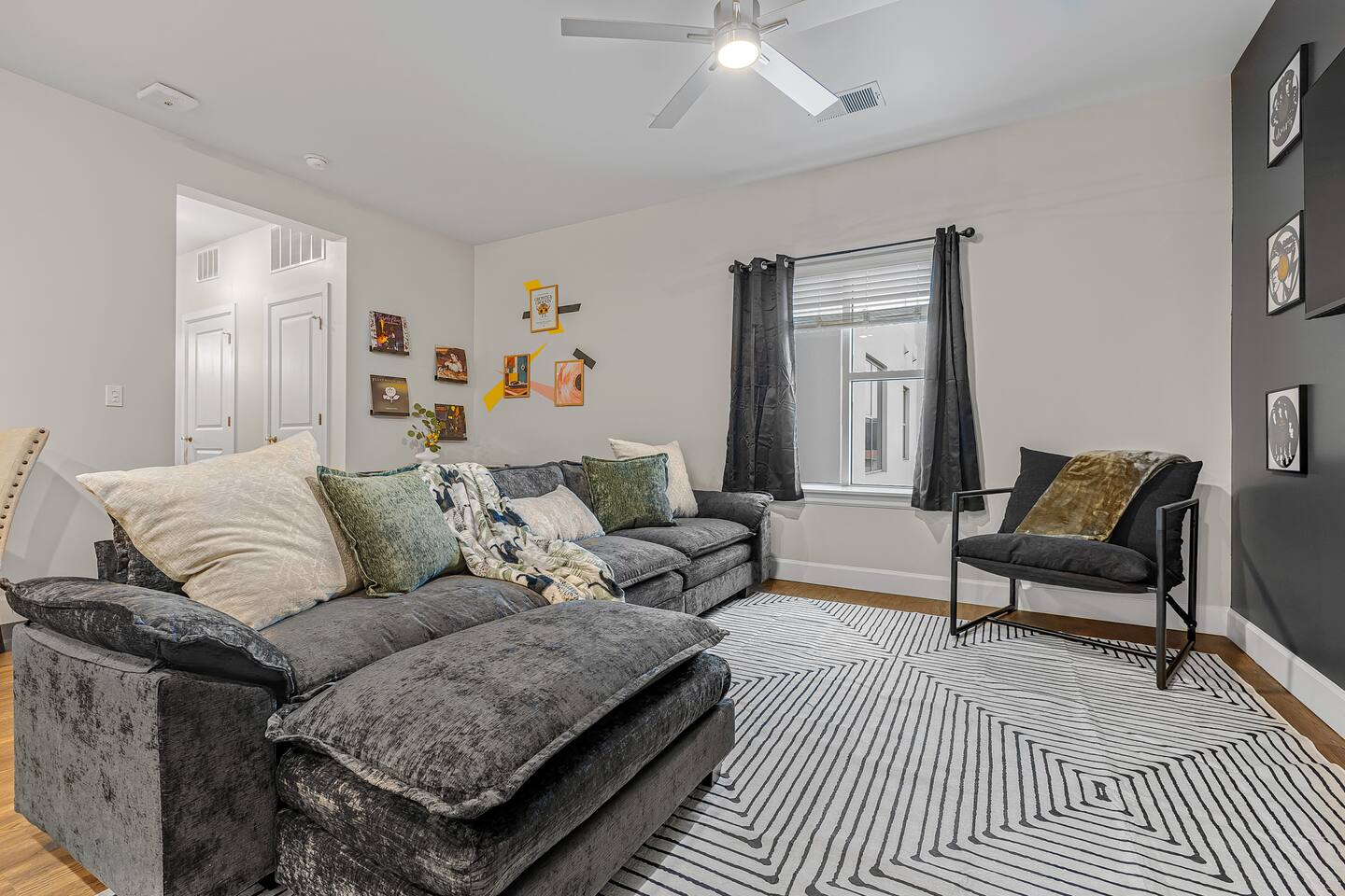 The Flip Side -> *The Living Area: -plush sofa with ottoman -Roku TV -Record player -Dining for 4 -Views of Downtown Nashville *Full Kitchen *Each bedroom has: - a hybrid King bed with premium satin linens - a Roku TV - ensuite bathroom with shower/tub combo - sound machine - blackout curtains Community Amenities -> -Gym -Pool -Two Decks -> We have one parking space available with the unit for a 15$/night fee, please let us know upon booking if you’re going to need this, we have to secure it prior for you, not guaranteed same day -> Please note that this is a smart building, you do have to use a fob to get in and out and obtain it before checking in. Some people don’t like the extra step- we get it! -> We are in the city limits and there are trains that pass through, you will hear them, we do have sound machines to block noise